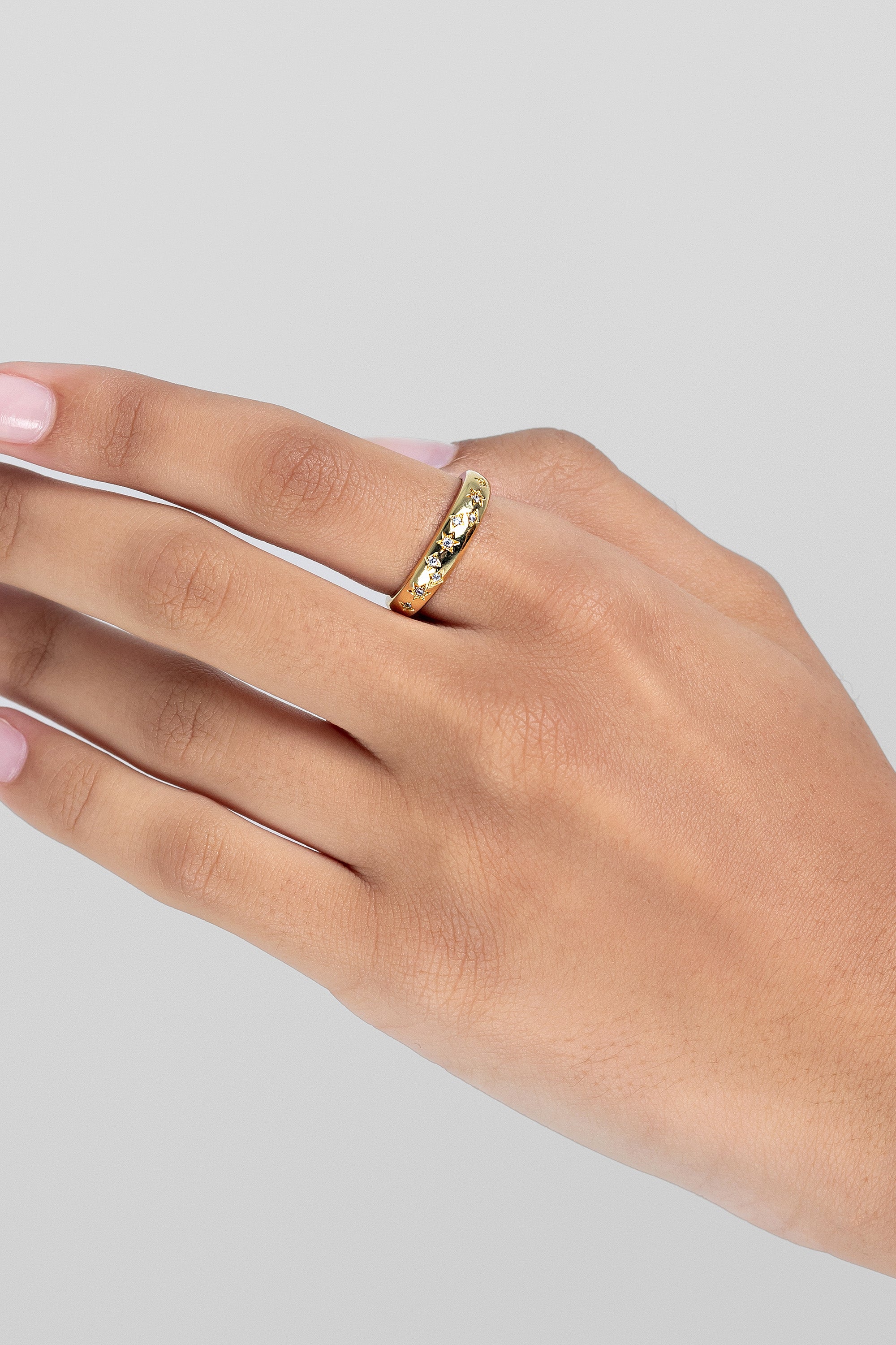 Elegant and detailed, this etched ring is finished with shimmering crystal accents. With a microplated, nickel-free design, it offers a timeless yet modern feel, perfect for adding a touch of sparkle to any look.