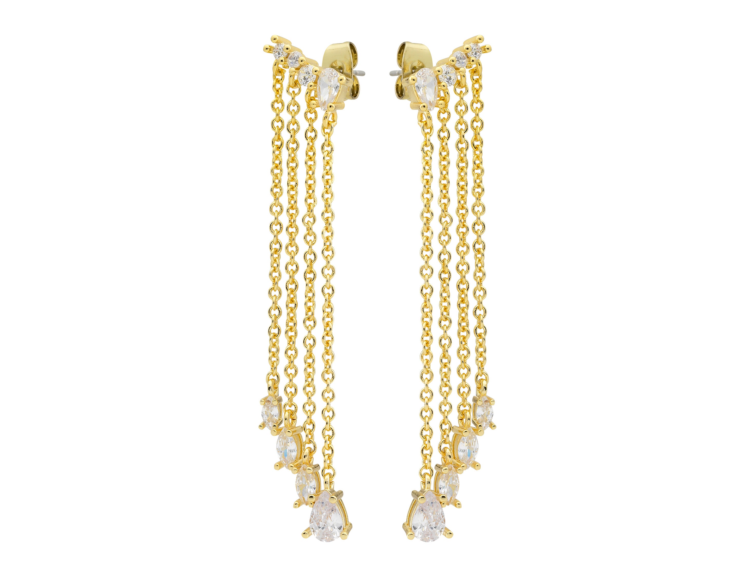 Introducing a striking multi-chain graduated earring with cascading silhouette. Designed with a 4.5cm longest drop, stainless steel posts, and a microplated, nickel-free finish, it adds effortless movement and elegance to any look.