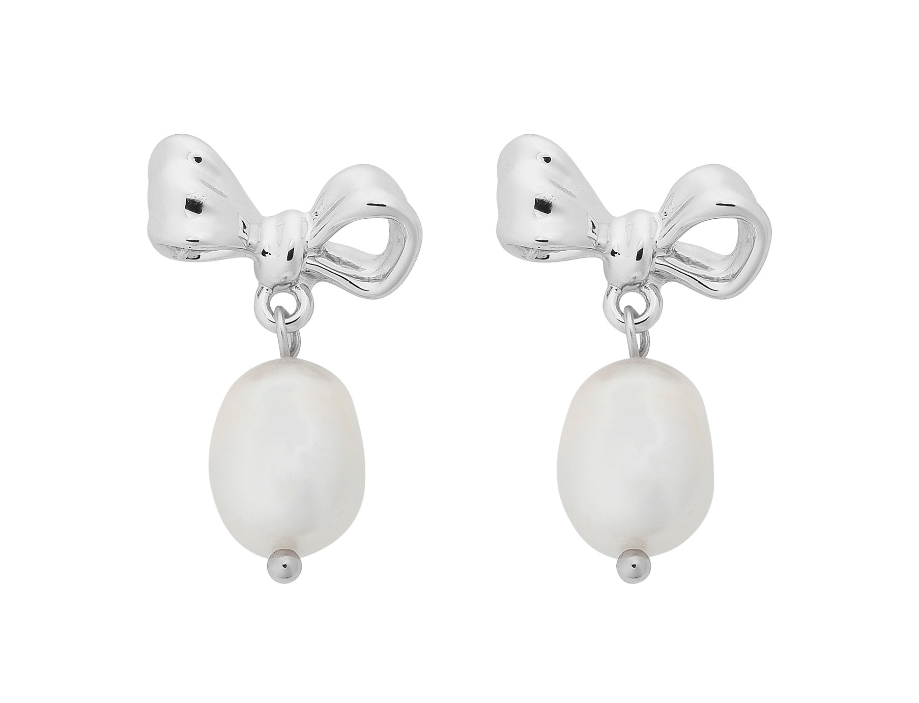 Delicate and feminine, these vintage inspired bow earrings feature fresh water pearls with a 2cm drop. Microplated and nickel-free, with stainless steel posts, these earrings are perfect for sensitive ears.