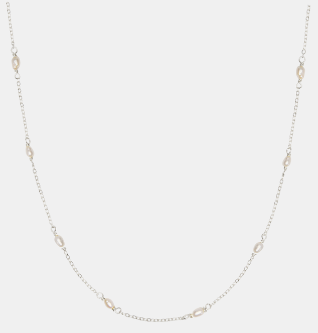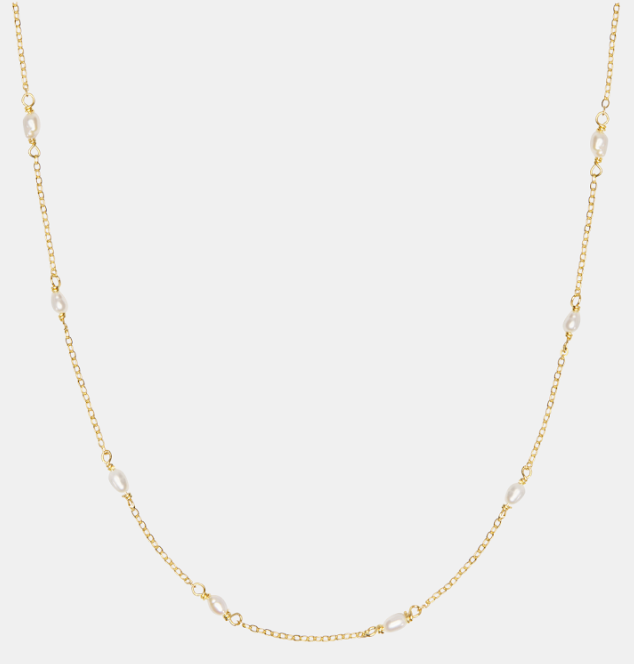Featuring petite freshwater pearls suspended on a fine chain, the subtle addition of a single blue stone imbued with sentimentality and good luck. Dainty proportions and timeless materials take this piece from special occasion to everyday wear.