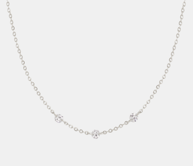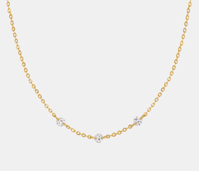 Featuring three luminous stones suspended along a fine chain, Floating Stone's radiance and delicacy captures light from every angle - like sunlight dancing on water.
