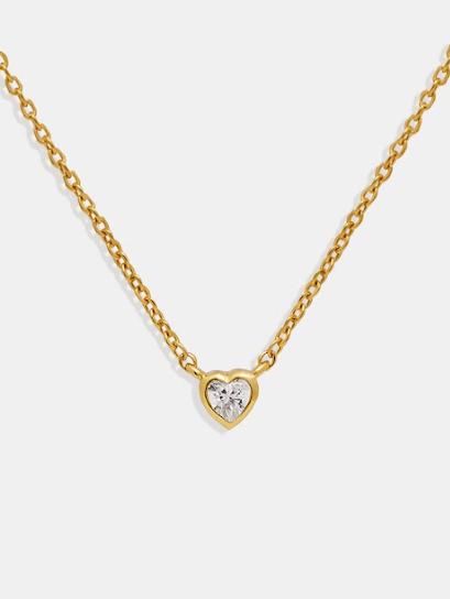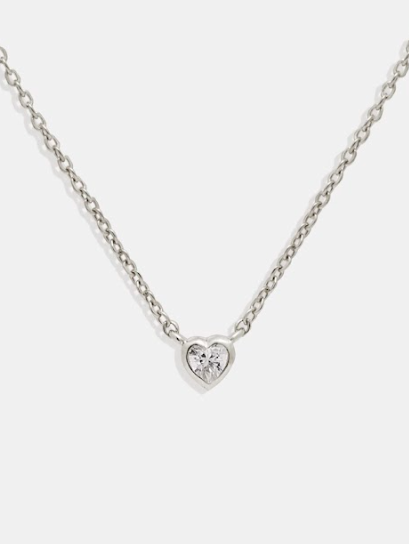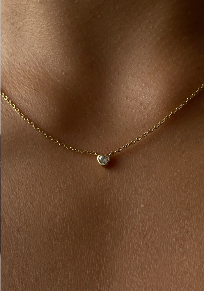 Featuring a dainty heart-shaped cubic zirconia stone enclosed in a bezel setting, suspended on a fine chain.