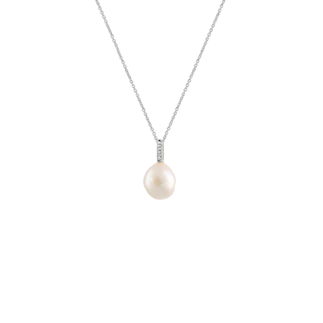 Meet the Bianc Seasalt Necklace! This charming piece showcases a freshwater pearl paired with sparkling Cubic Zirconia stones, all set in Rhodium plated Sterling Silver on a delicate chain. Each stone and crystal is one-of-a-kind, so expect some delightful little differences from the picture. It measures 40cm long with a 5cm extender, and the pendant is a dainty 12mm by 24mm—perfect for adding a splash of seaside sparkle to your look!